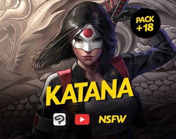 This is the premium package with the gold level rewards that I offer on my Patreon. It contains: All the versions I drew of the character KATANA including the NSFW versions, as well as the video of the creation process and the CLIP STUDIO file for study. Enjoy! (All drawings were done by hand, with digital painting, just canvas and brush.)
